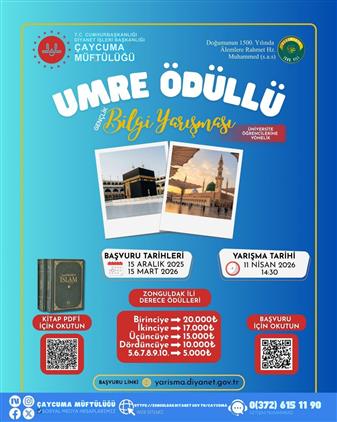Bu yıl dereceye giren 100 üniversite, 150 lise öğrencisi Başkanlığımızca umreye gönderilecektir. Ayrıca il genelinde ilk 10'a giren öğrencilere de çeşitli para ödülleri verilecektir. Geçen yıl olduğu gibi bu yılda da her ilçemizde sınav merkezi kurularak öğrenciler ilçelerimizde sınava girebilecektir