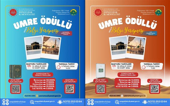 Başkanlığımız tarafından gençliğimizin dinî ve ahlaki değerlerini pekiştirmek amacıyla düzenlenen “Umre Ödüllü Gençlik Bilgi Yarışması” ülke genelinde gerçekleştirilecektir.