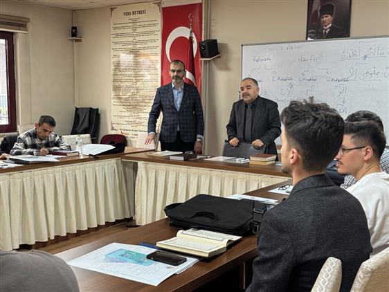 İl Müftüsü İbrahim Halil Demir, devam eden kursu ziyaret ederek kursiyerlerle bir araya geldi.